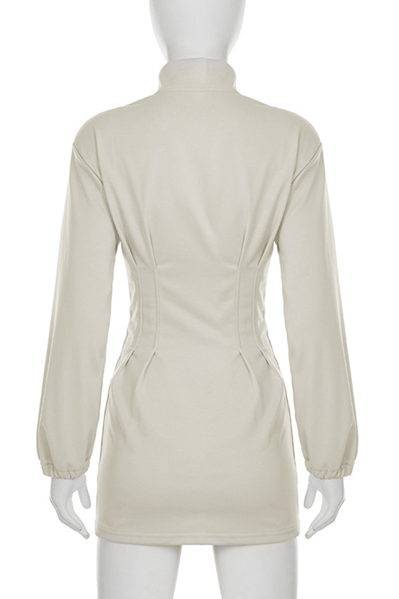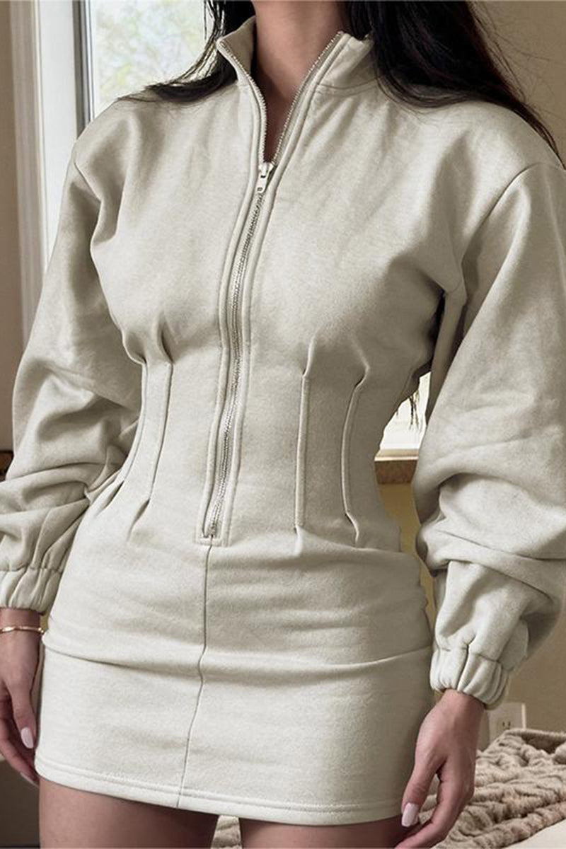 Your new favorite dress boasts a sleek zip-front and chic high collar. Effortlessly stylish for everyday wear, it's a versatile addition to any wardrobe.