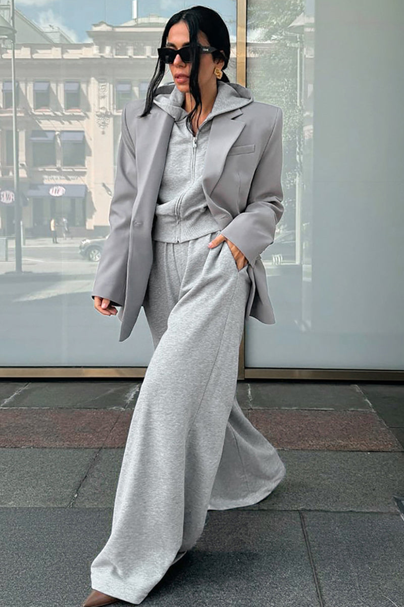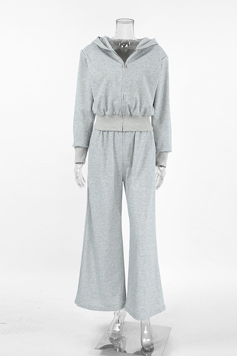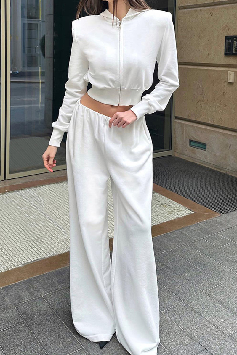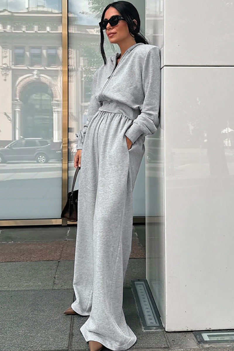 Your new favorite set features a zip-up top complemented by wide-leg pants for ultimate comfort. Perfect for a laid-back day out or a casual gathering with friends.