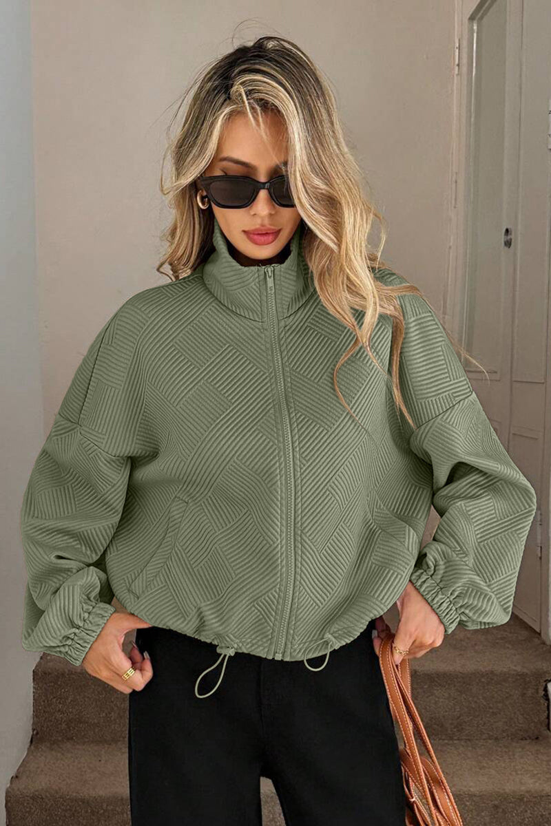 Your new go-to jacket features a chic zip-up design and relaxed fit. Effortlessly elevates any outfit, perfect for layering in various seasons.