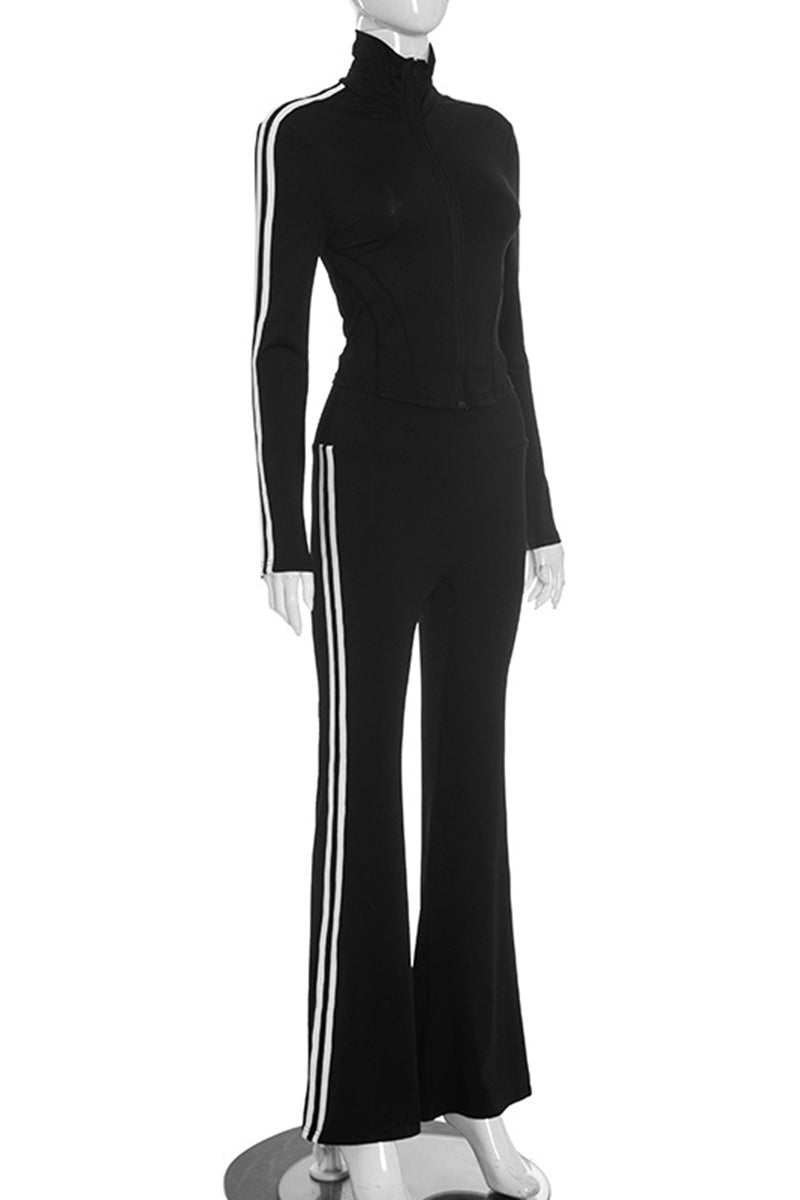 Your new go-to set features a sleek zip-up top paired with stylish, flared pants. Perfect for both casual outings and relaxed evenings.